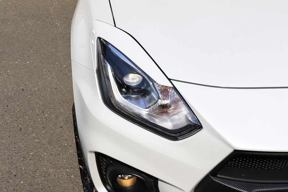 簡単取り付けでスイフトスポーツ[ZC33S]の目元をシャープに演出する専用ヘッドランプガーニッシュ。空力を意識した、こだわりの造形。