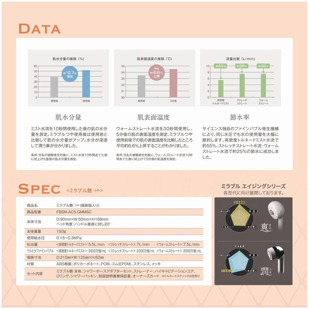 | 商品名 | シャワーヘッド ミラブル艶(つや)(個装箱入り) FBSM-AC5-GMMSC [マイクロバブル機能] |