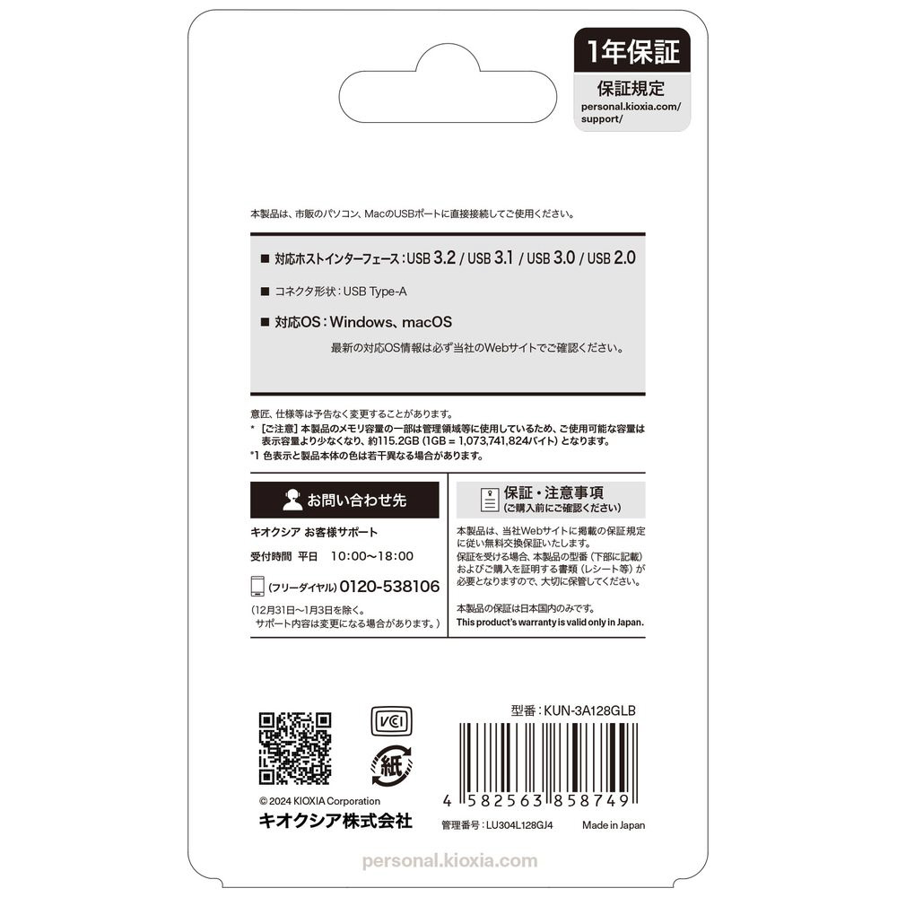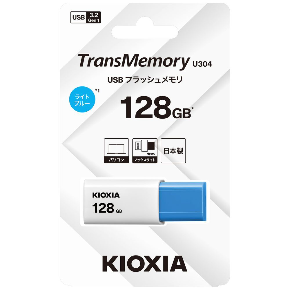 USBメモリ TransMemory U304(Mac/Windows11対応) ライトブルー KUN-3A128GLB [128GB /USB TypeA /USB3.2 /ノック式] 【sof001】