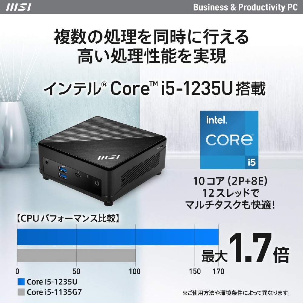 「Cubi 5 12M-246JP」は第12世代インテル Core i5-1235Uを搭載し、超小型PCでも性能を求める方にお勧めのモデル。