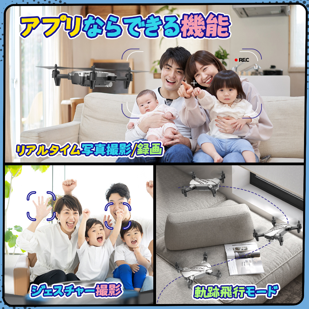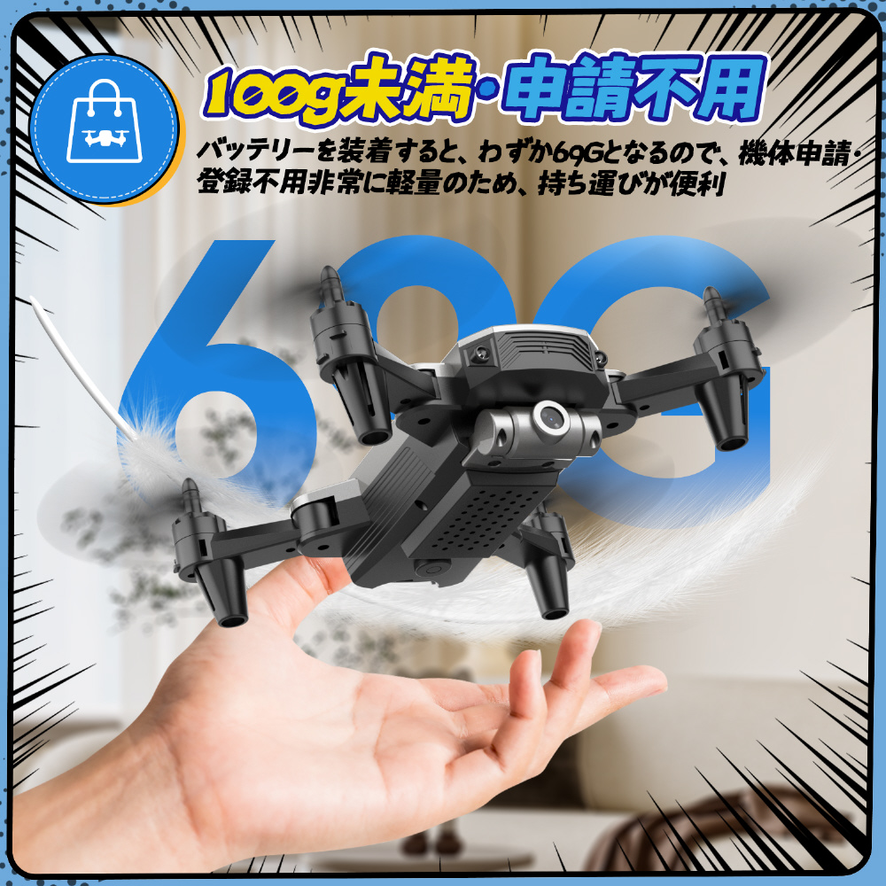 ドローン 100g未満 720Pカメラ付き 小型 折り畳み 子供向け トイドローン D20-GR