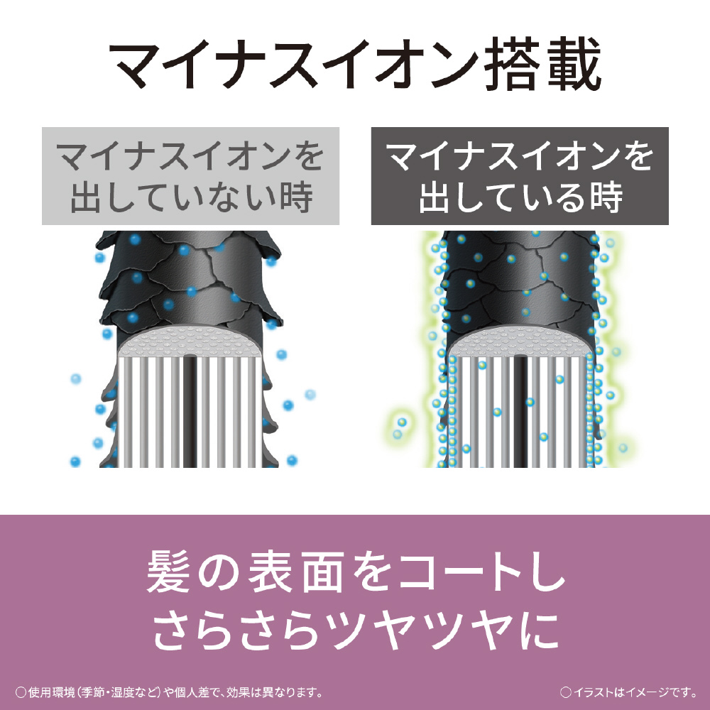 ■マイナスイオンが髪の表面をやさしくコートし、サラサラ ツヤツヤにスタイリング