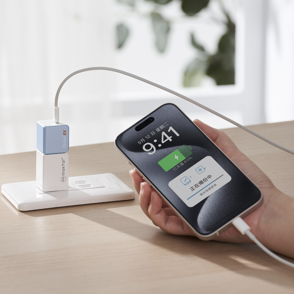 データをバックアップ中も充電速度が遅くなる心配はありません。