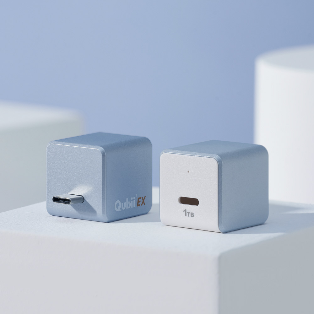Qubii EXはフラッシュメモリが内蔵されており、別途microSDカードを購入することなくデータのバックアップが可能。