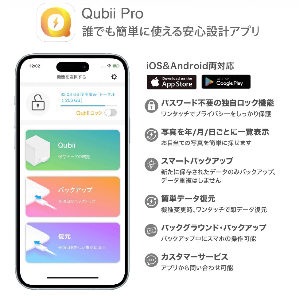 iOS & Androidの両方に対応するアプリ「Qubii Pro」がご利用いただけます