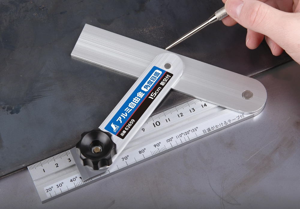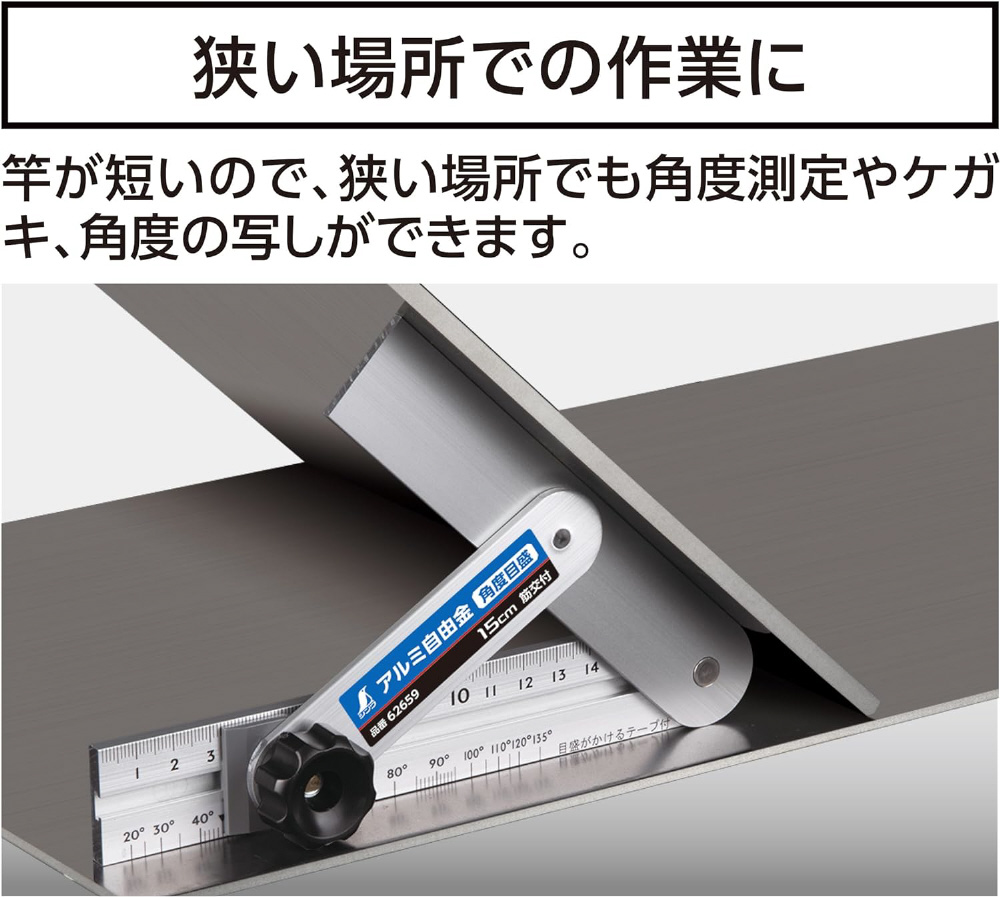 竿が短いので狭い場所でも角度測定やケガキ、角度の写しができます