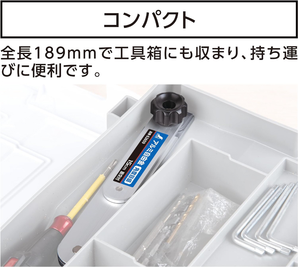 全長189mmで工具箱にも収まり、持ち運びに便利です