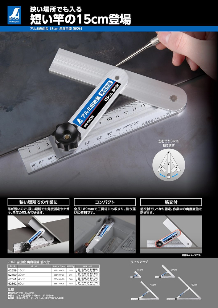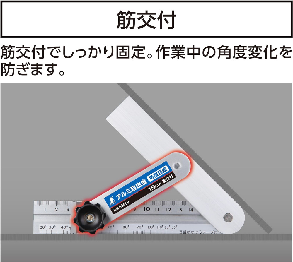 商品名 アルミ自由金 角度目盛 筋交付 15cm 62659 シンワ