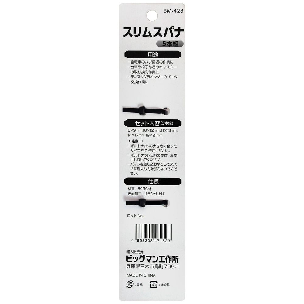 商品名 イトー #047152 スリムスパナセット BM-428