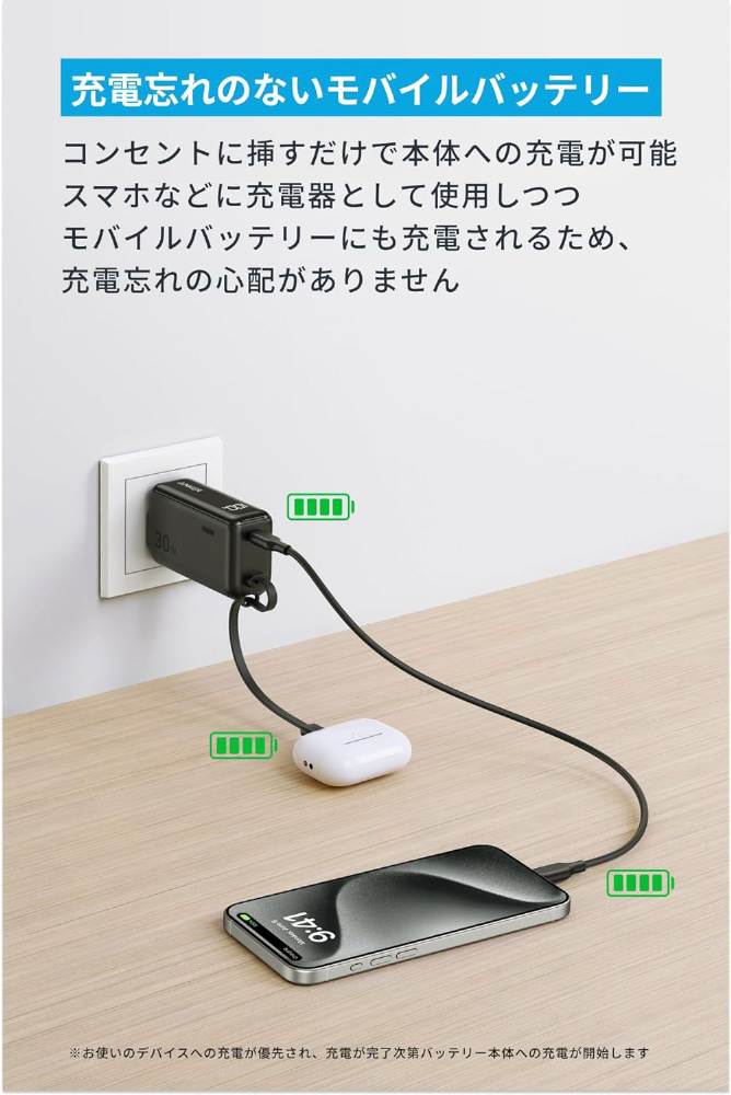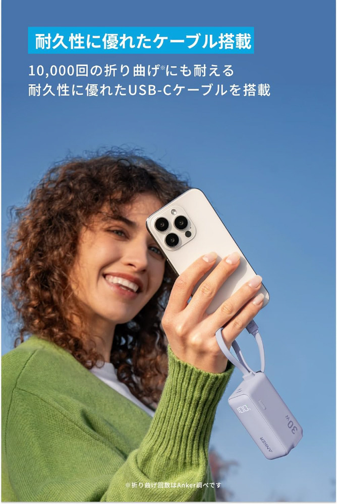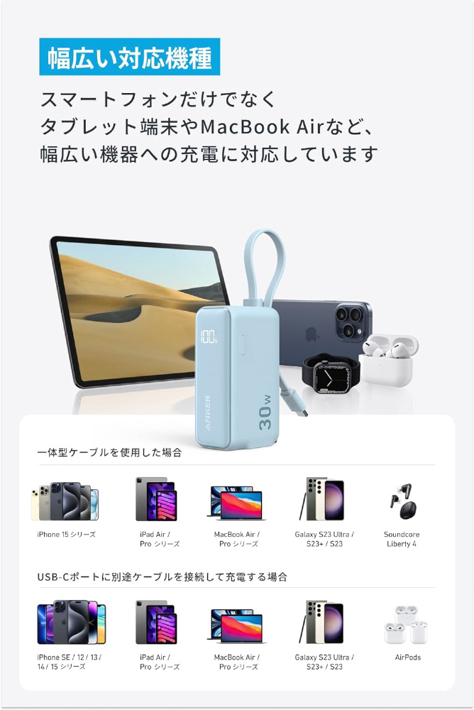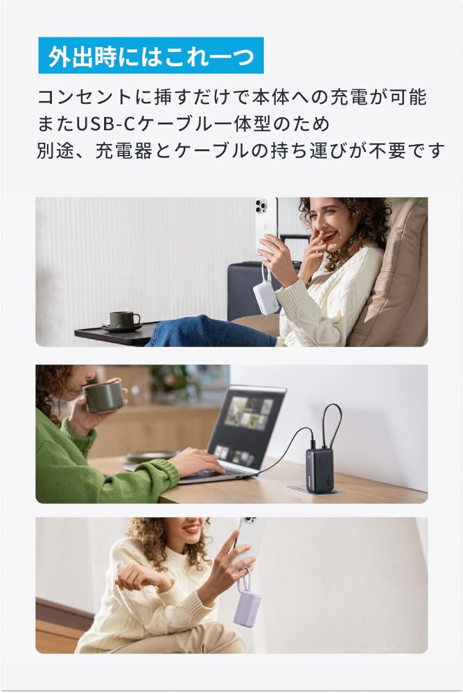 モバイルバッテリー Anker Power Bank 5000mAh(30W、Fusion、Built-In USB-C ケーブル)  ホワイト A1636N21 [USB Power Delivery対応 /1ポート] 【sof001】