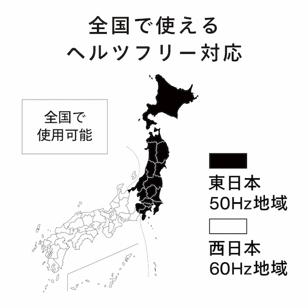 操作は3段階の出力と最大10分タイマーの2ダイヤル式で初めてでもかんたんに使うことができます。 全国で使えるヘルツフリー対応です。