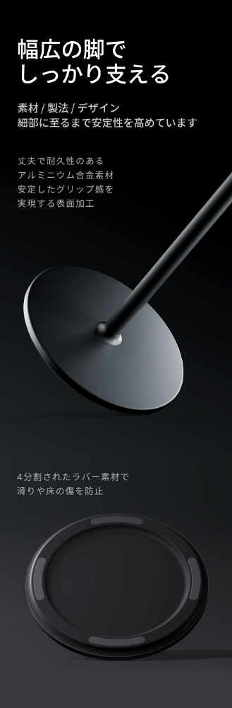 台座には4分割されたラバー素材で滑りや床の傷を防止します。