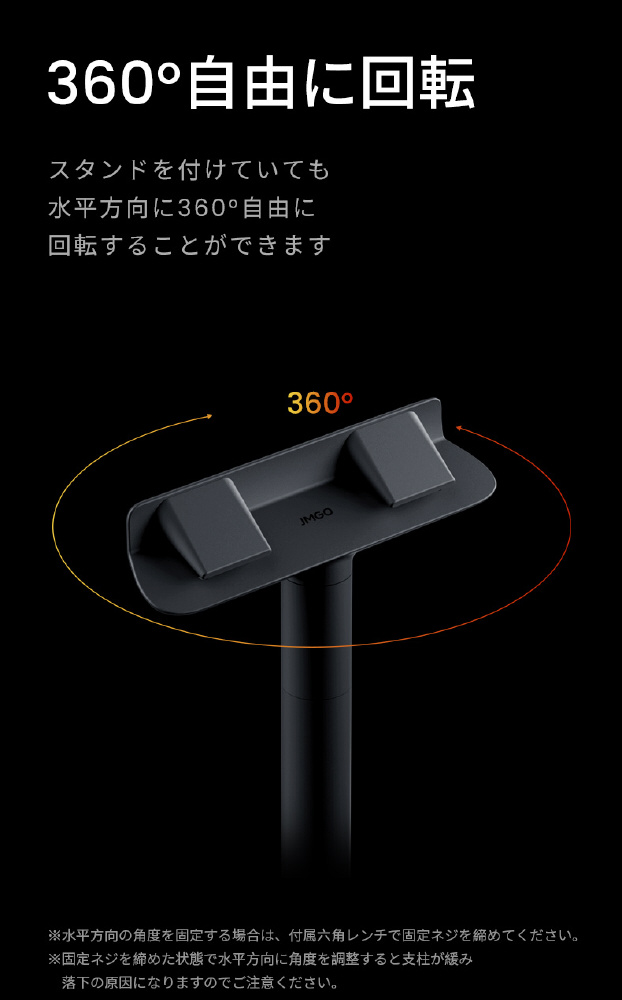 スタンドを付けていても、水平方向に360°自由に回転することができます。