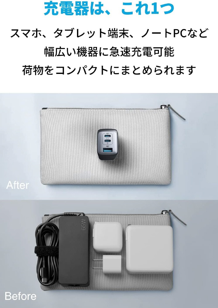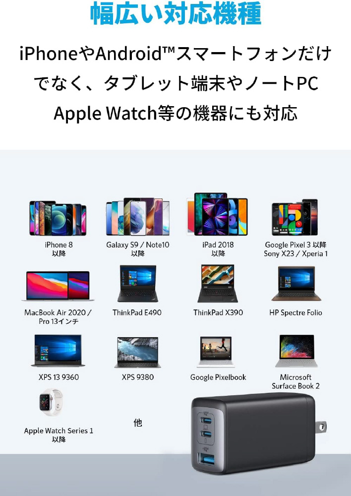 最大3台同時に充電可能で持ち運びに便利な超コンパクト急速充電器