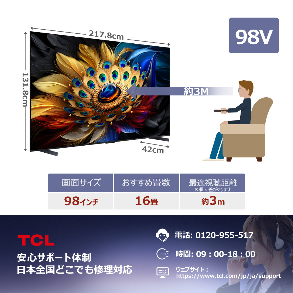 液晶テレビ 98C655 [98V型 /Bluetooth対応 /4K対応 /BS・CS 4Kチューナー内蔵 /YouTube対応] 【要事前見積もり】
