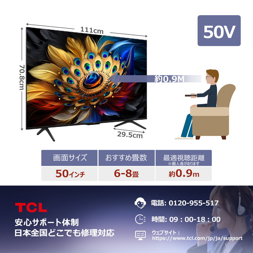 量子ドット4K液晶テレビ 50C655 [50V型 /Bluetooth対応 /4K対応 /BS・CS 4Kチューナー内蔵 /YouTube対応] 【買い替え5000pt】