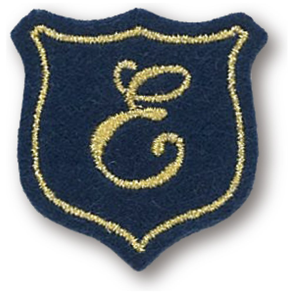 ■チェックやボーダー柄に合わせてもおしゃれな金糸を用いたエンブレム調のイニシャルワッペン。