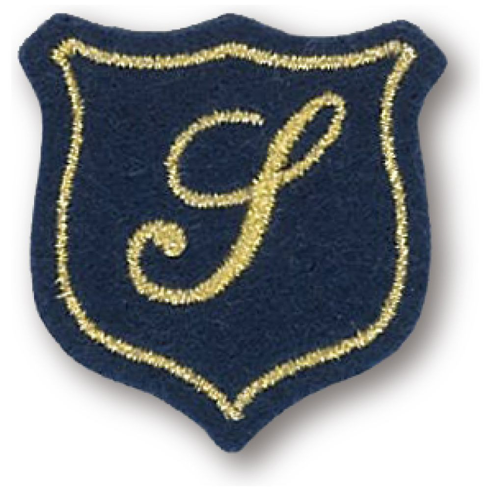 ■チェックやボーダー柄に合わせてもおしゃれな金糸を用いたエンブレム調のイニシャルワッペン。