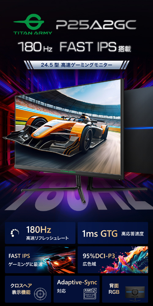 P25A2GC ゲーミングモニター ブラック [24.5型 /フルHD(1920×1080) /ワイド]