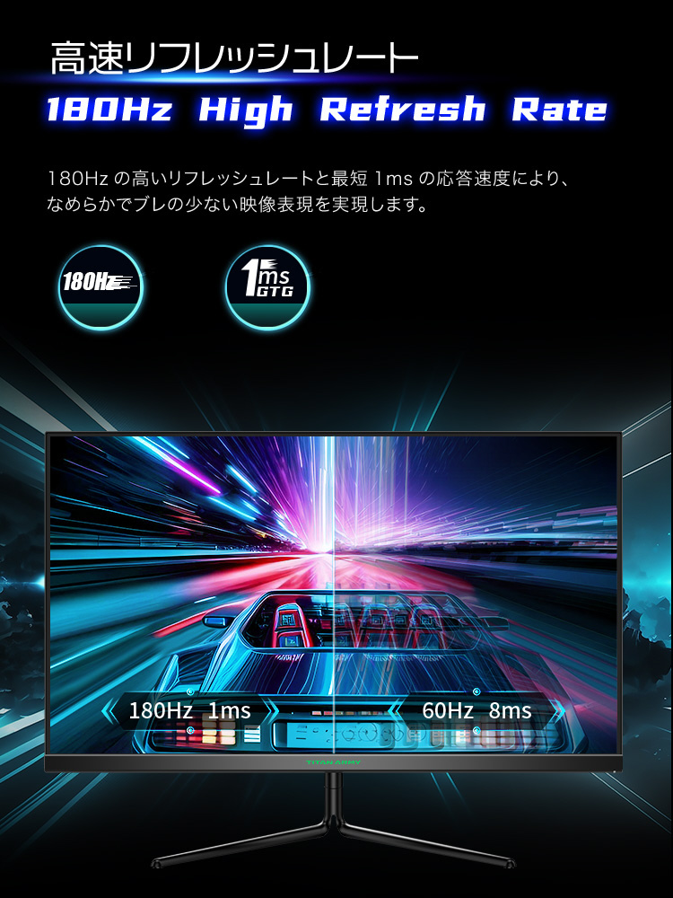 最大リフレッシュレート:180Hz