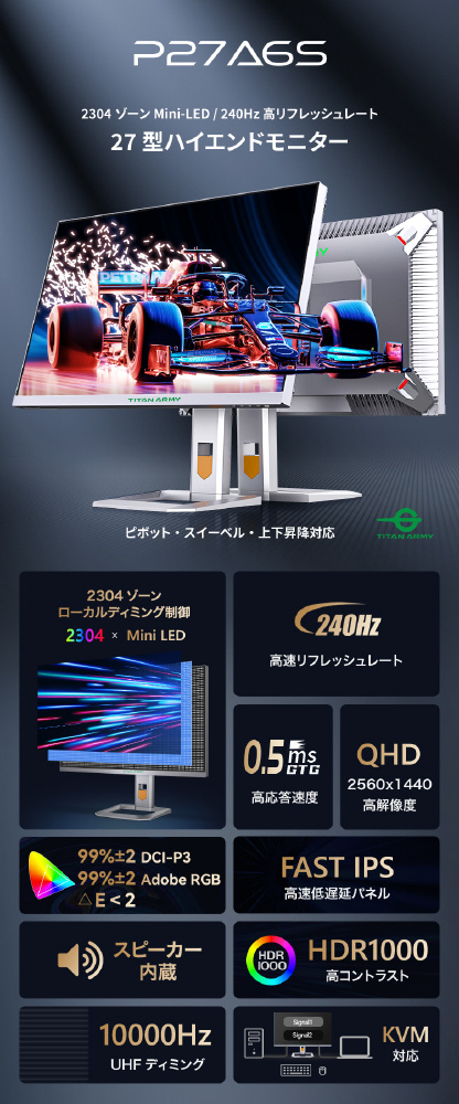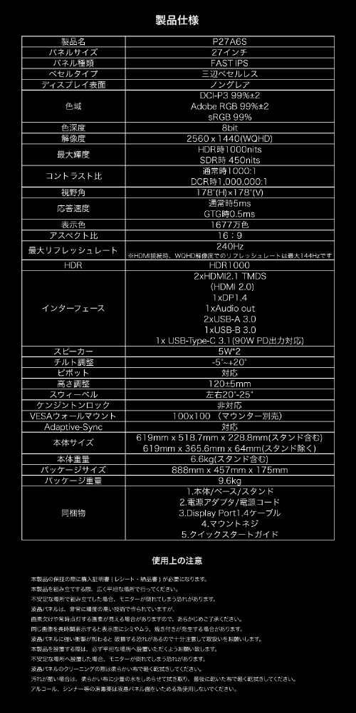 P27A6S USB-C対応 ゲーミングモニター シルバー [27型 /WQHD(2560×1440) /ワイド] 【sof001】
