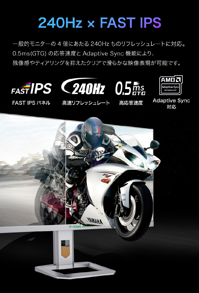 最大リフレッシュレート:240Hz