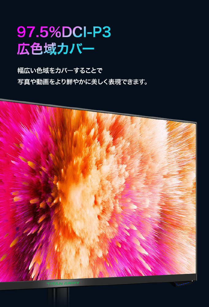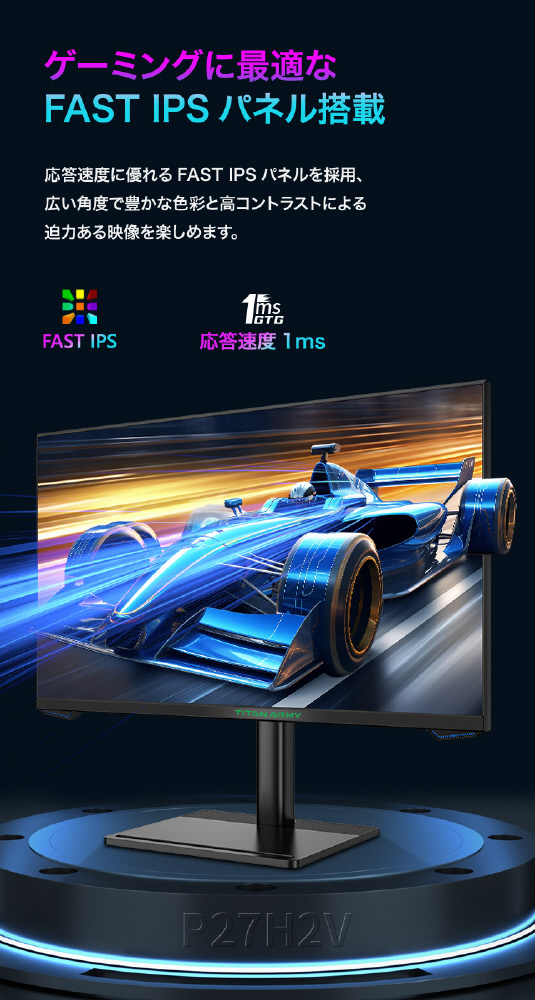 高速で色再現性に優れたFAST IPSパネルを採用。広い視野角と鮮やかな色彩を実現し、臨場感あふれるゲーム体験を提供します。