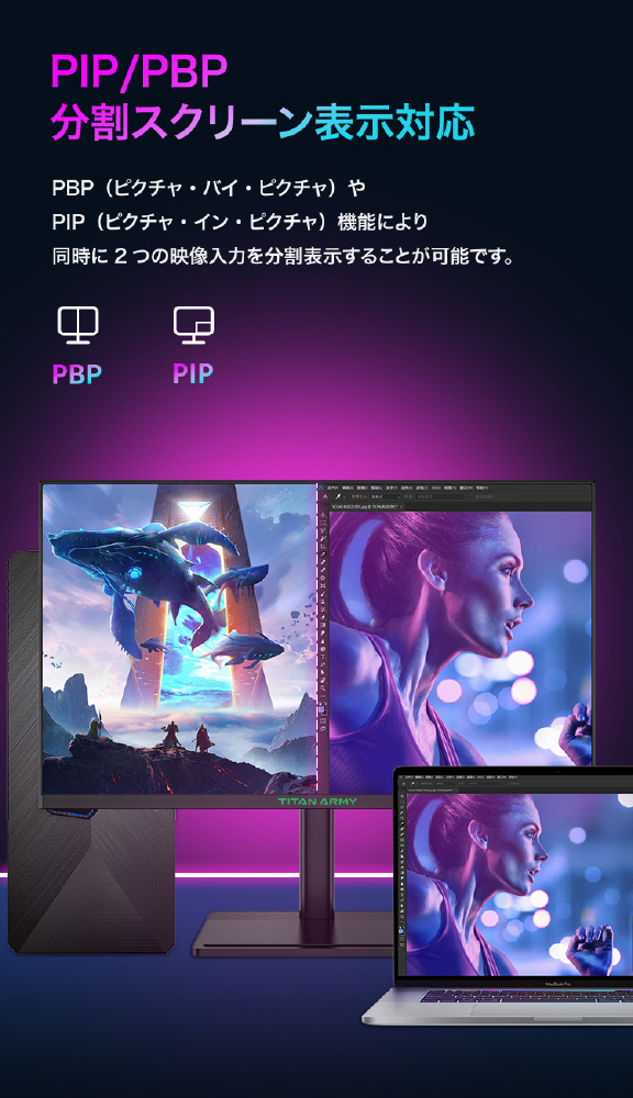 複数の入力ソースからの映像を同時に表示し、マルチタスクを効率的に行えます。