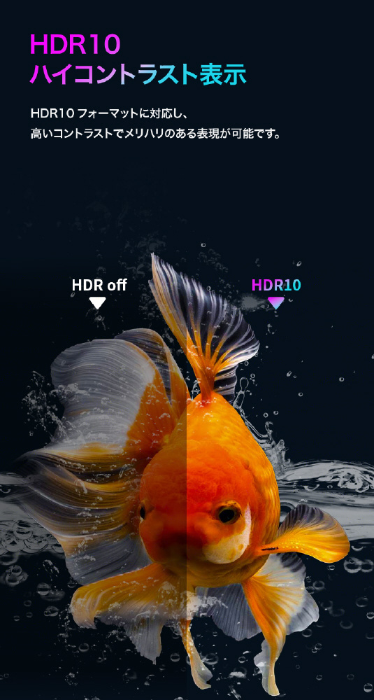 3840x2160の4K解像度で、細かいディテールまで鮮明に表現。臨場感あふれる映像を楽しめます。