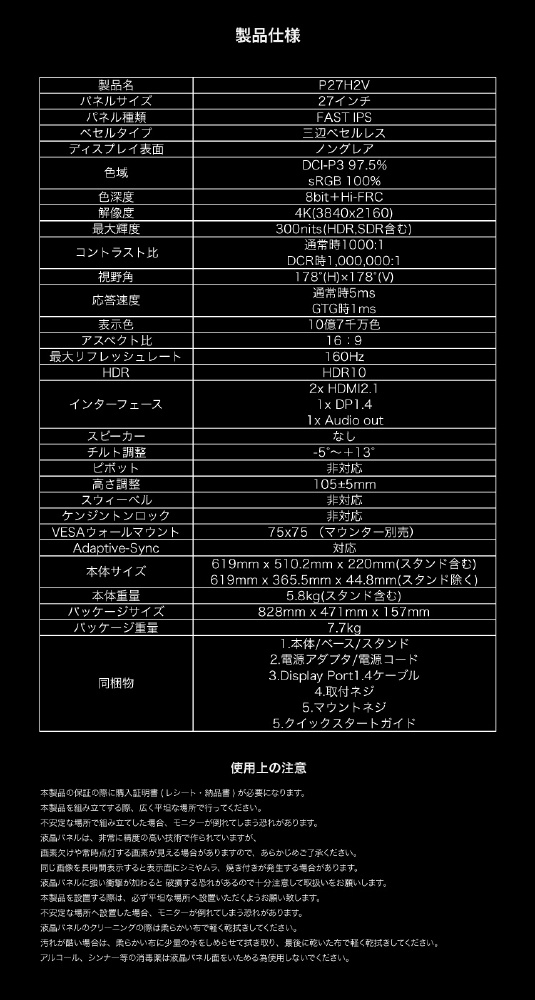 27型4K 160Hz HDMI2.1対応ゲーミングモニター