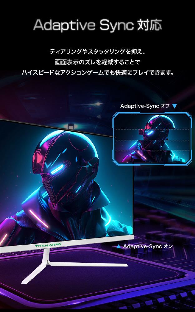 GPUとの連携により、画面のちらつきやティアリングを軽減。滑らかな映像を提供し、プレイの没入感を高めます。