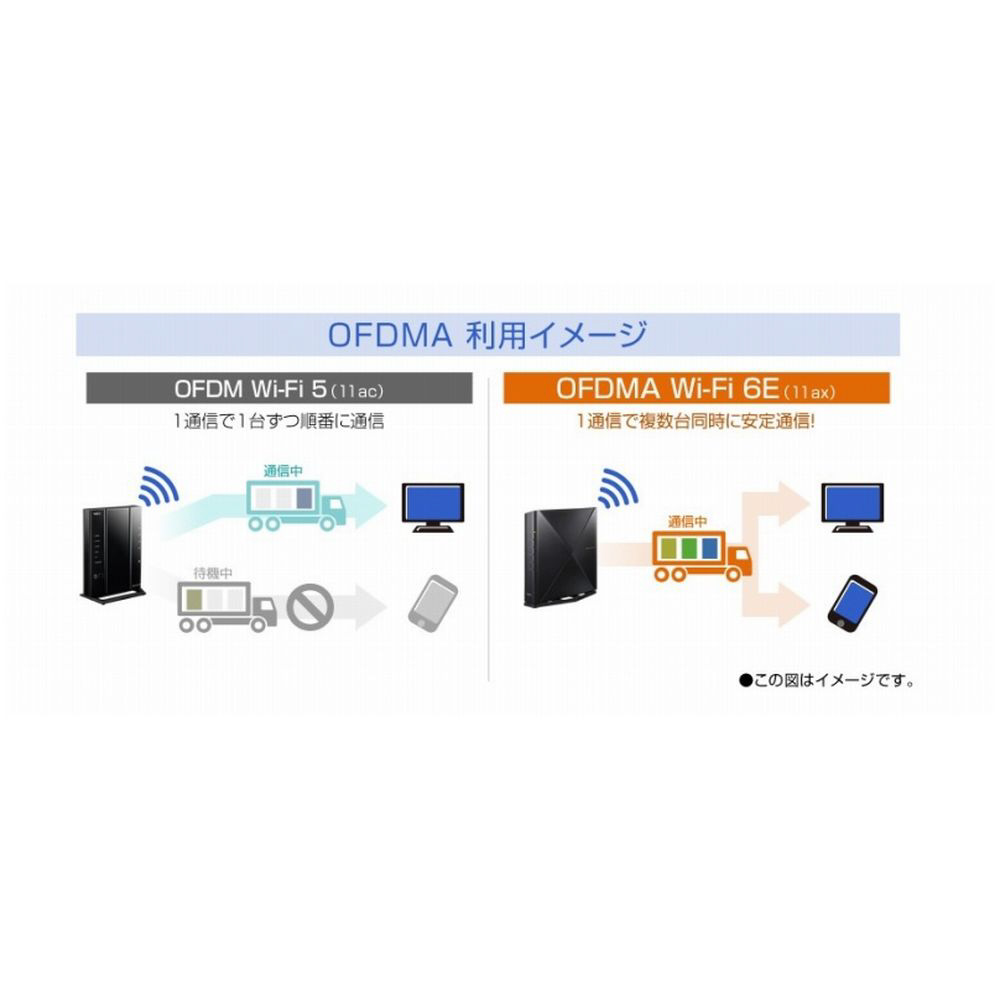Wi-Fi 6E(11ax)の特長的な技術である「OFDMA(直交周波数分割多元接続)」により、複数の端末と接続したときでも安定した通信が可能です。