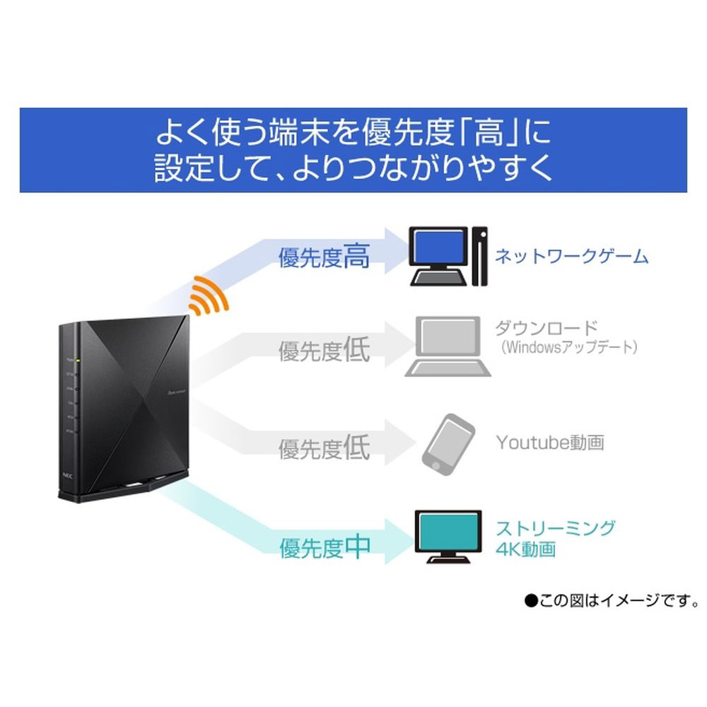 また、端末レベルで通信の優先順を設定できる【QoS(優先通信制御)】※2にも対応しているので、Wi-Fi環境側でも他の端末に影響されにくく安定した通信品質を確保できます。
