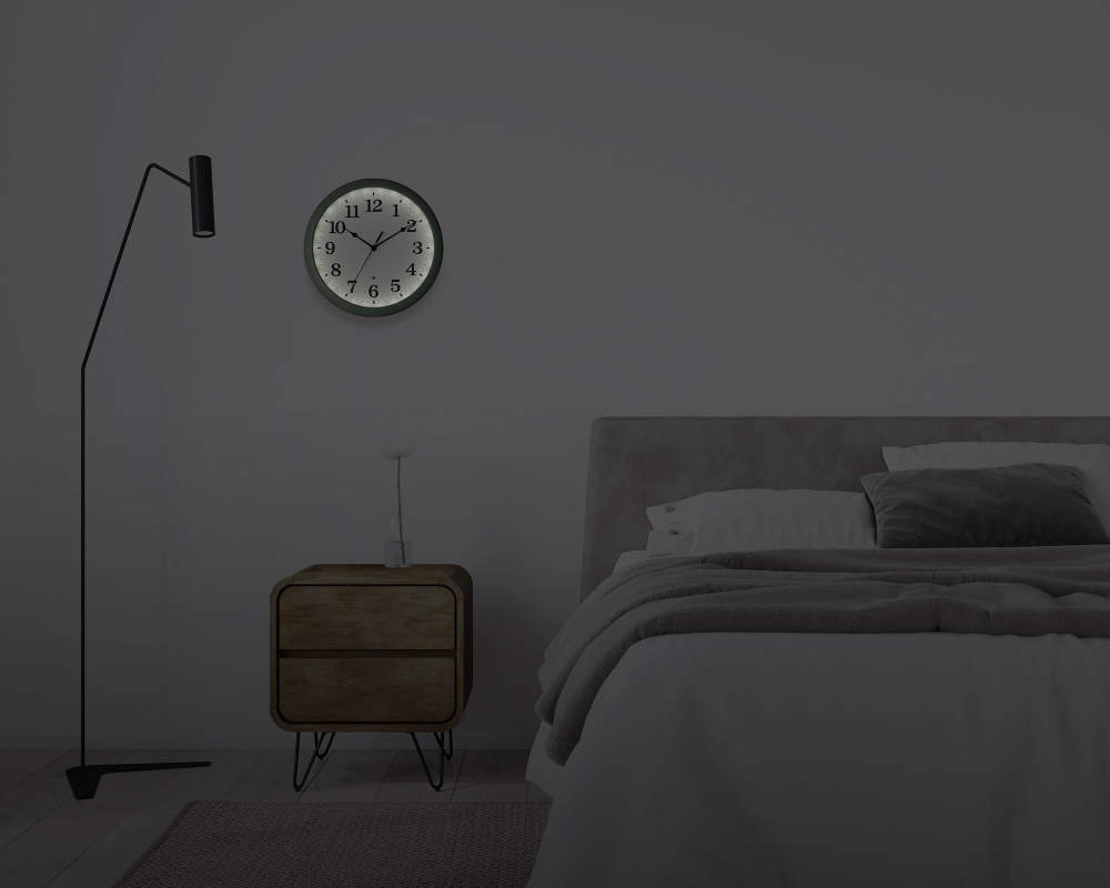 多様なインテリアに取り入れやすい、夜間自動点灯機能付の掛時計です。