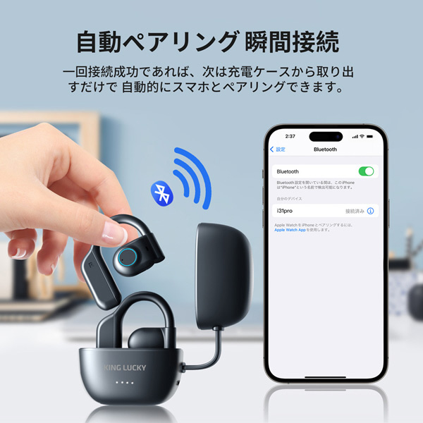 空気伝導技術とオープンイヤーデザインを採用し、耳掛けフック部分には形状記憶合金ワイヤと高品質シリコン素材を使用しています。