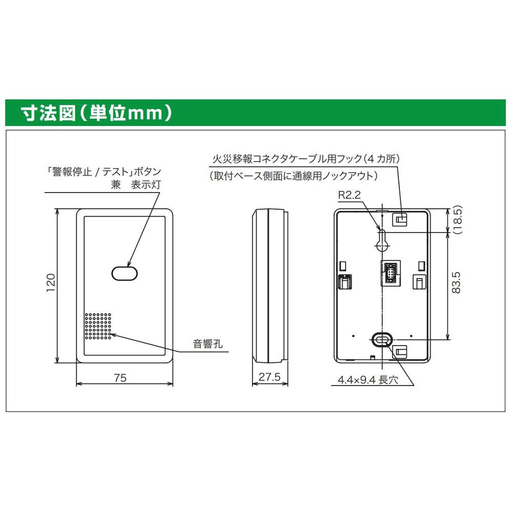●火災移報接点:無電圧1a接点 無極性(接点容量 CD50V 100mA)