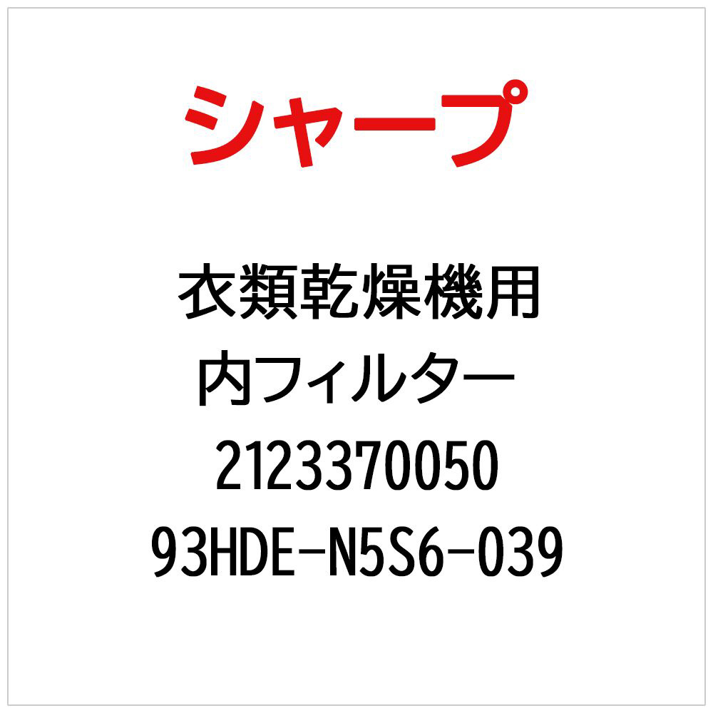 | 商品名 | 衣類乾燥機用内フィルター 93HDE-N5S6-039【部品番号: 2123370050】 |
