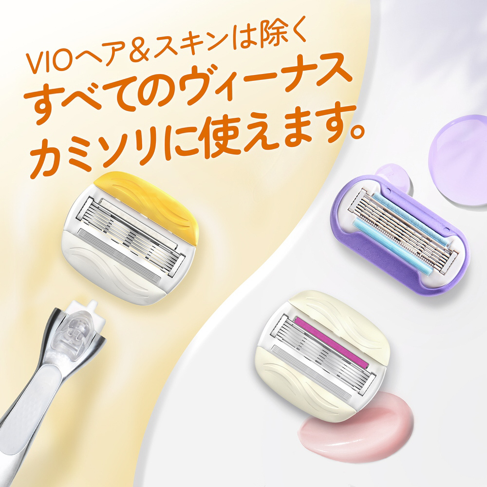 ●ヴィーナスの替刃は、ヴィーナスVIOを除くヴィーナスのハンドルに使用できます