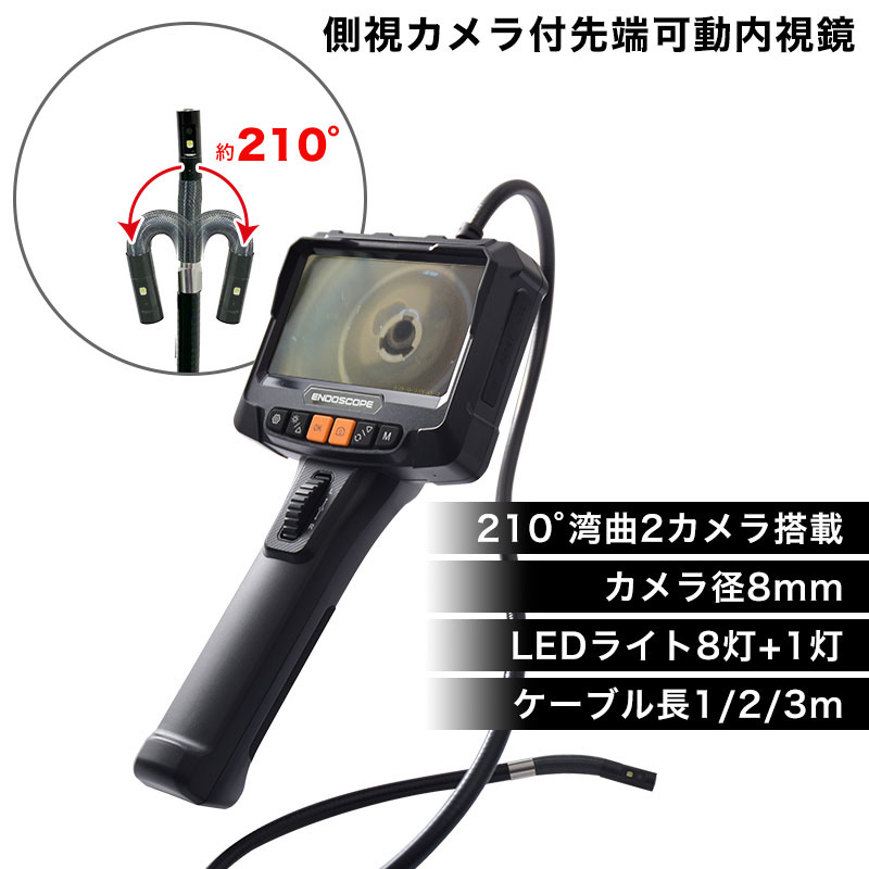 【先端が曲がるメインとサイドの2カメラを搭載した8mm工業用内視鏡】