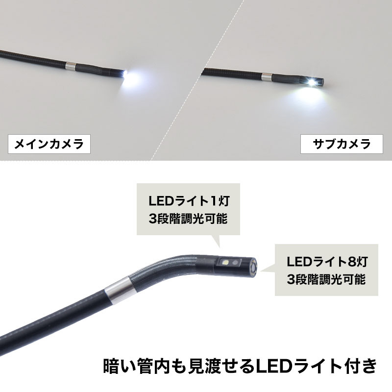 メインカメラはカメラケーブル先端部に、サブカメラは先端側面に搭載されています。