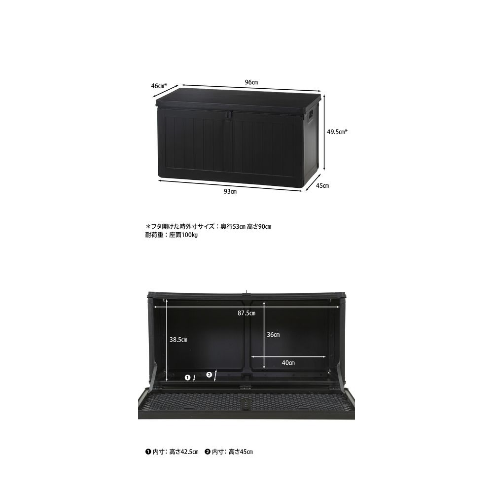 収納BOXベンチ BK 190L (38356) ブラック