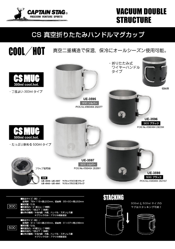 300mlと500mlサイズのマグはスタッキング可能!
