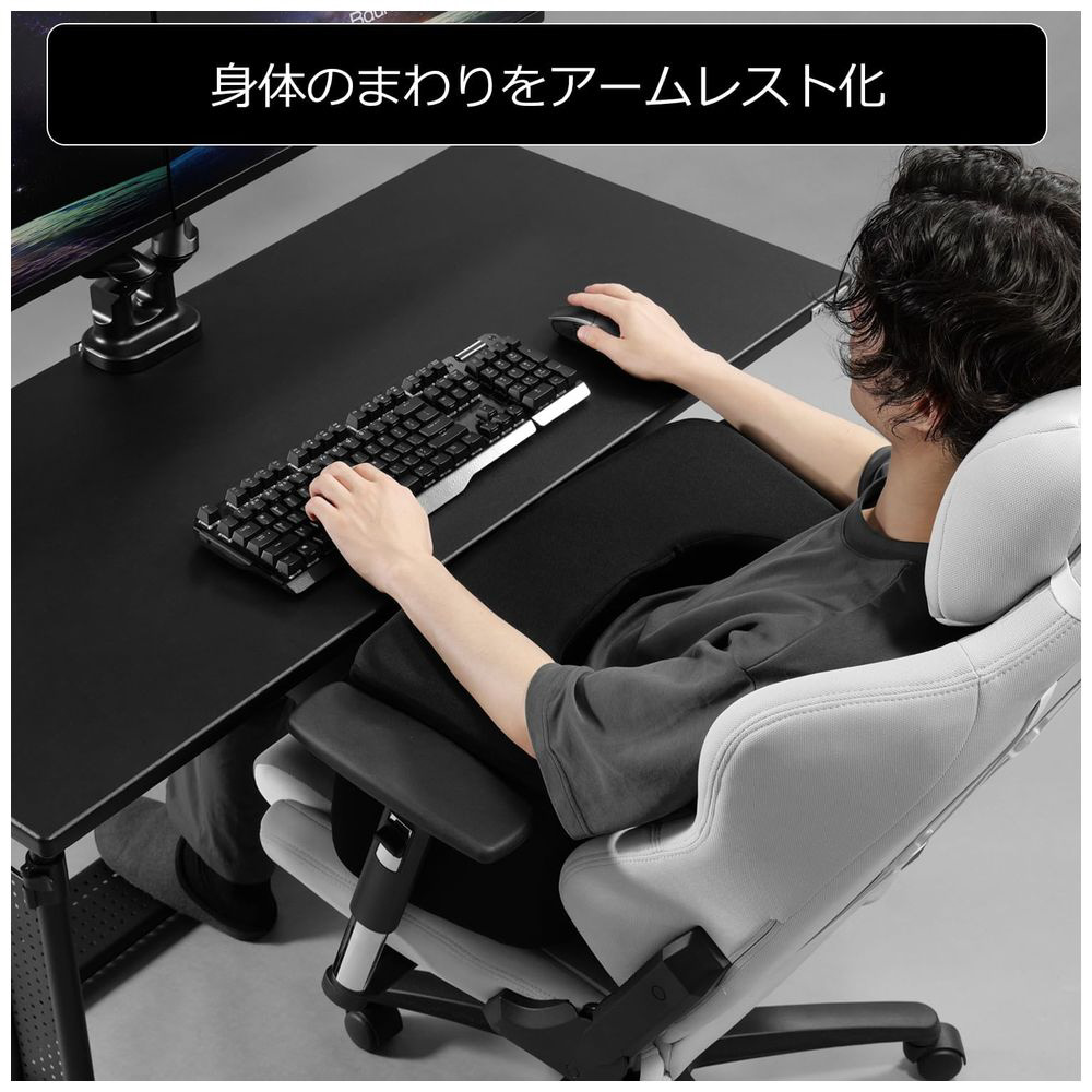 身体前面を囲うようにアームレスト化でき、あらゆる体格・プレイスタイルのPC操作をサポートします。
