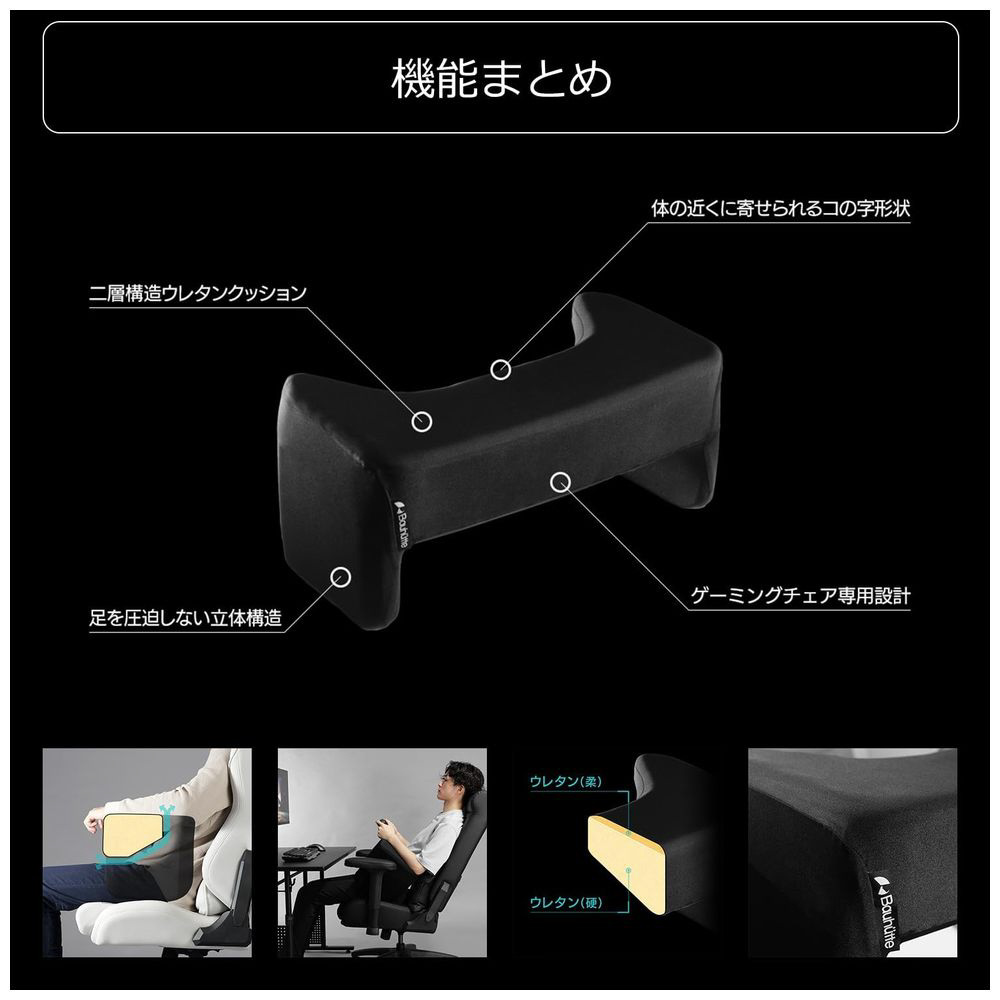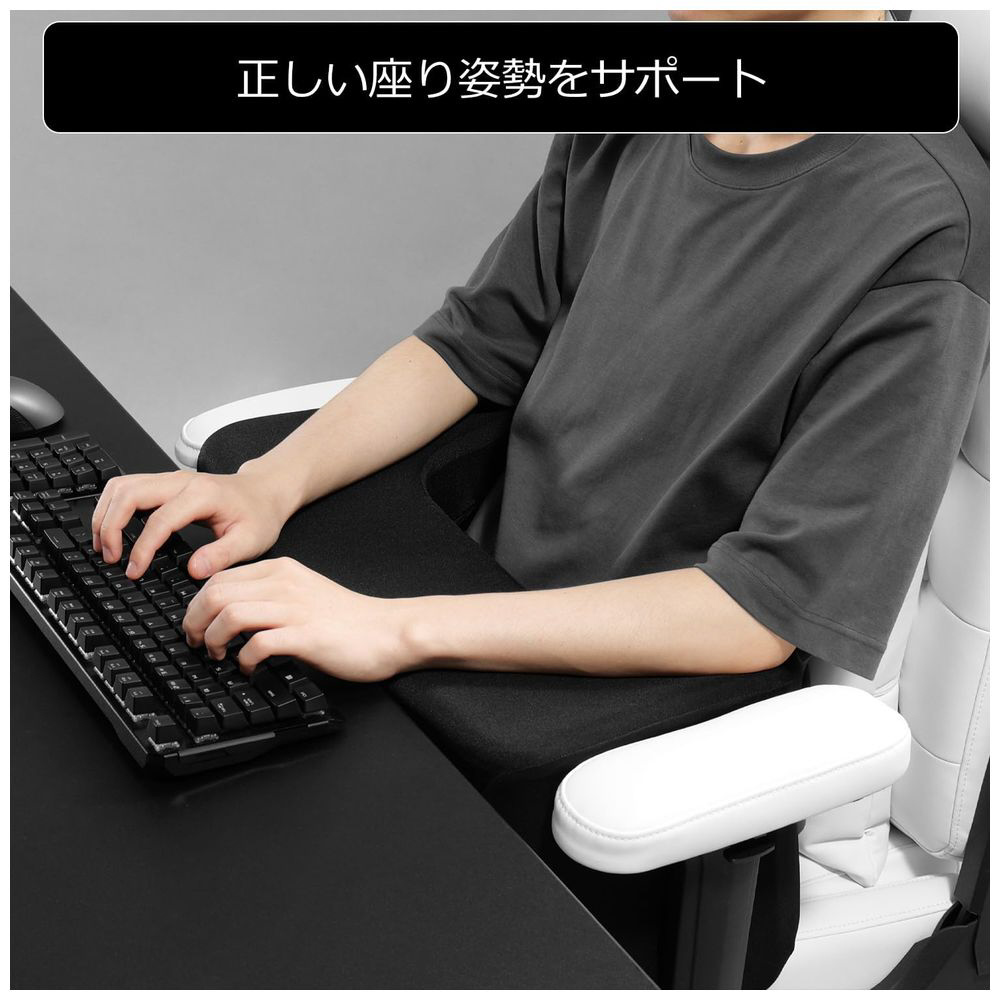 チェアからデスクまでの隙間を埋める、コの字形状の肘掛けクッションです。