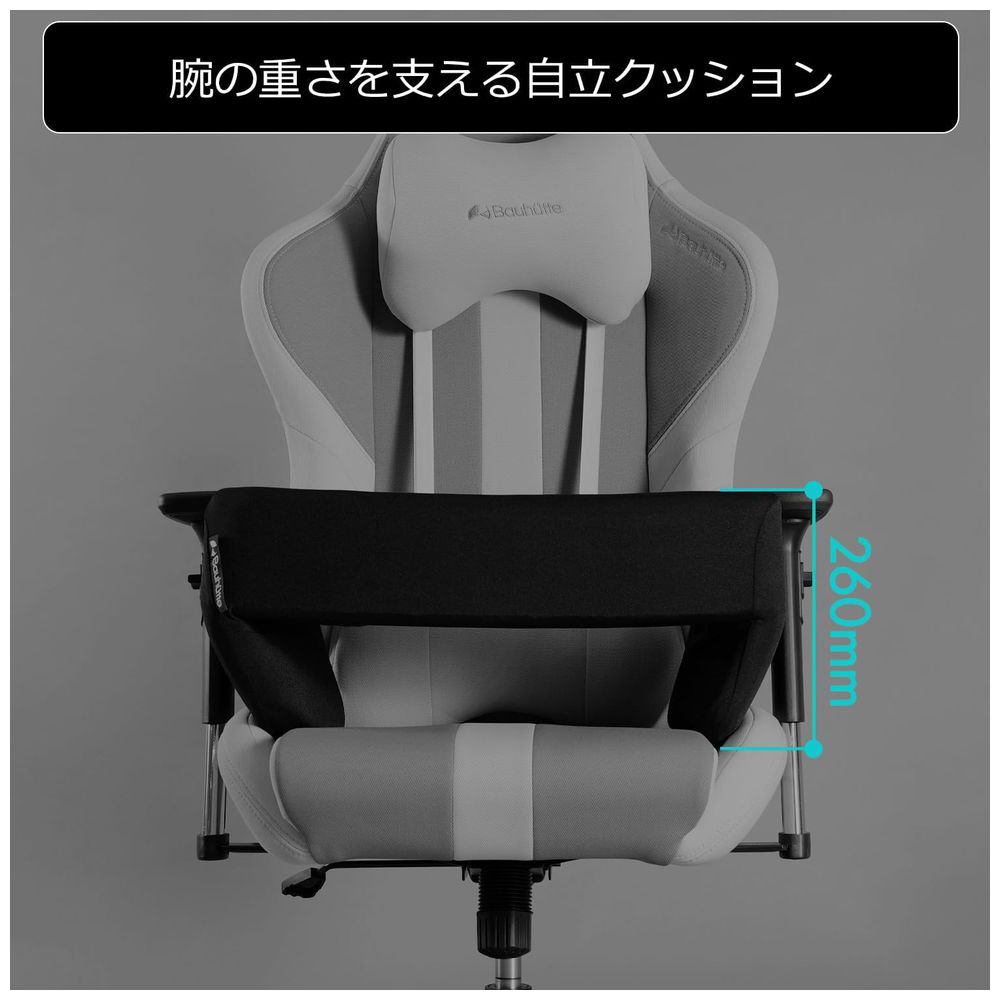 両腕の重さをクッションだけで支える、自立型のアーチ形状を採用。