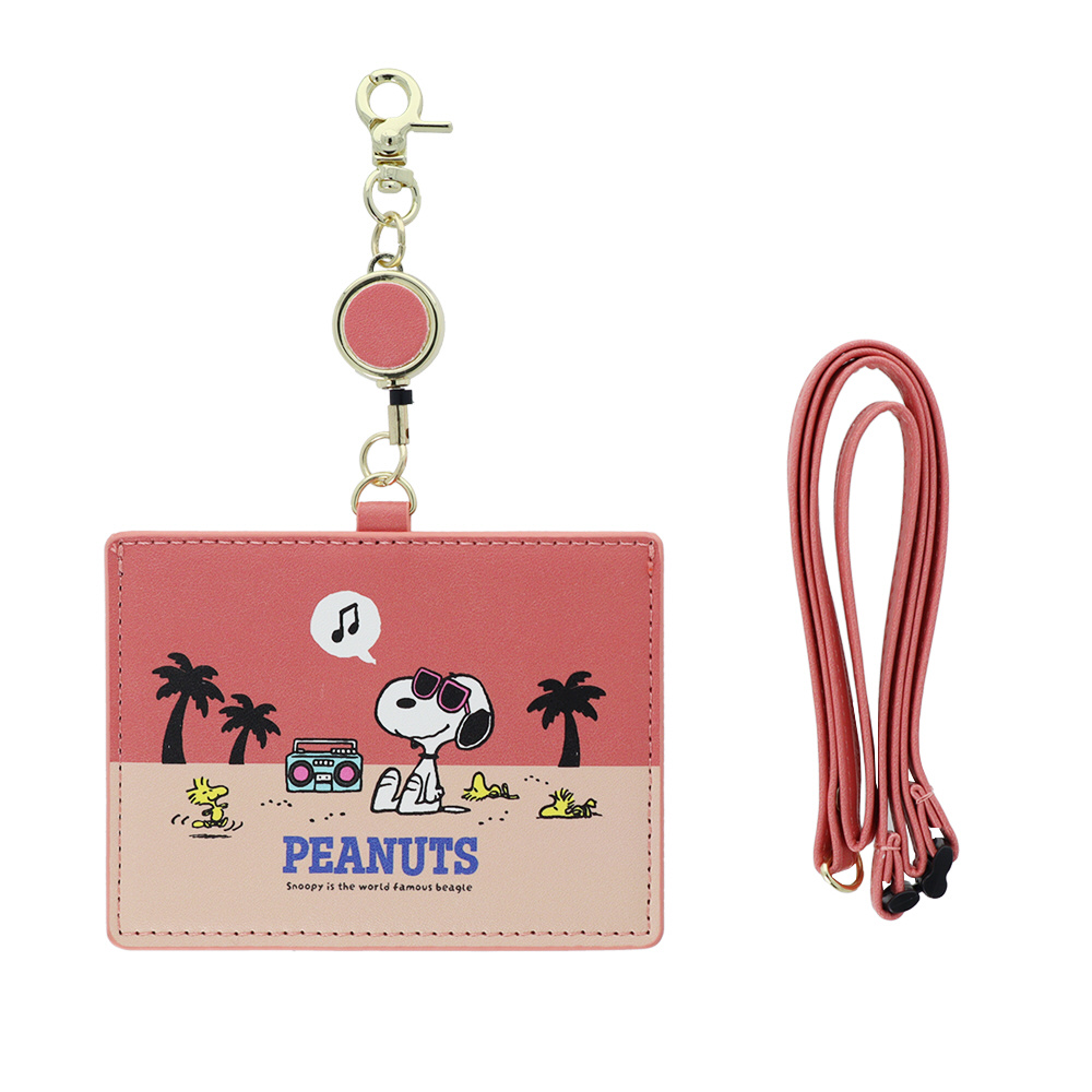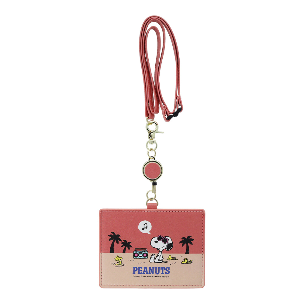 便利なリール付きIC・IDカードホルダーの、「リール付カードホルダー」。 柄は、『スヌーピー』のビーチ柄。