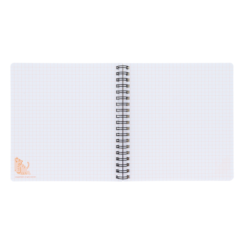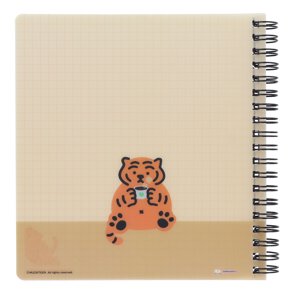 本文にはラインが入っている、「Wリングノート」。柄は、MUZIK TIGER。デザインは、A。