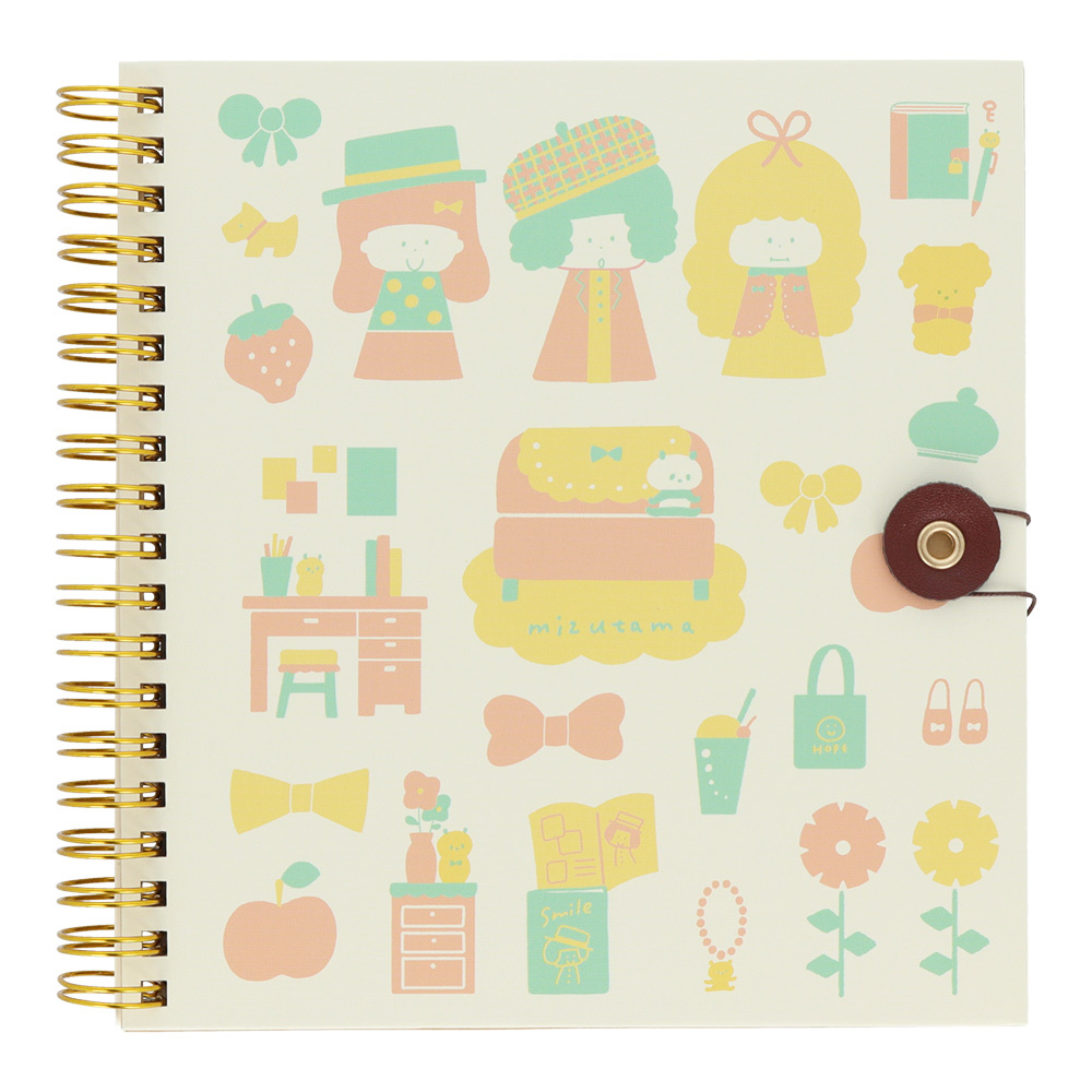 イラストを描いたりシールを貼ったり、便利でかわいい玉ひも留め仕様、「スクラップブック」。柄は、mizutama。デザインは、レトロ。