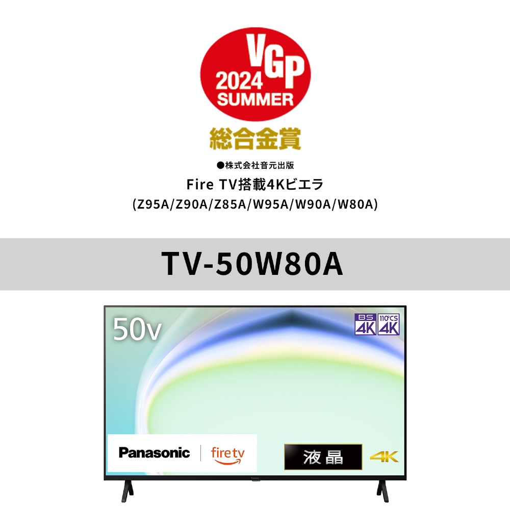 液晶テレビ VIERA(ビエラ) TV-50W80A [50V型 /Bluetooth対応 /4K対応 /YouTube対応]