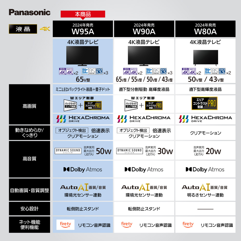 液晶テレビ VIERA(ビエラ) TV-65W95A [65V型 /Bluetooth対応 /4K対応 /YouTube対応]
